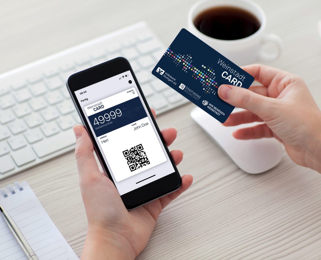 Mit der WeinstadtCARD sammeln Sie bei jedem Einkauf in den teilnehmenden Fachgeschäften und Handwerksbetrieben Bonuspunkte – jetzt auch digital.